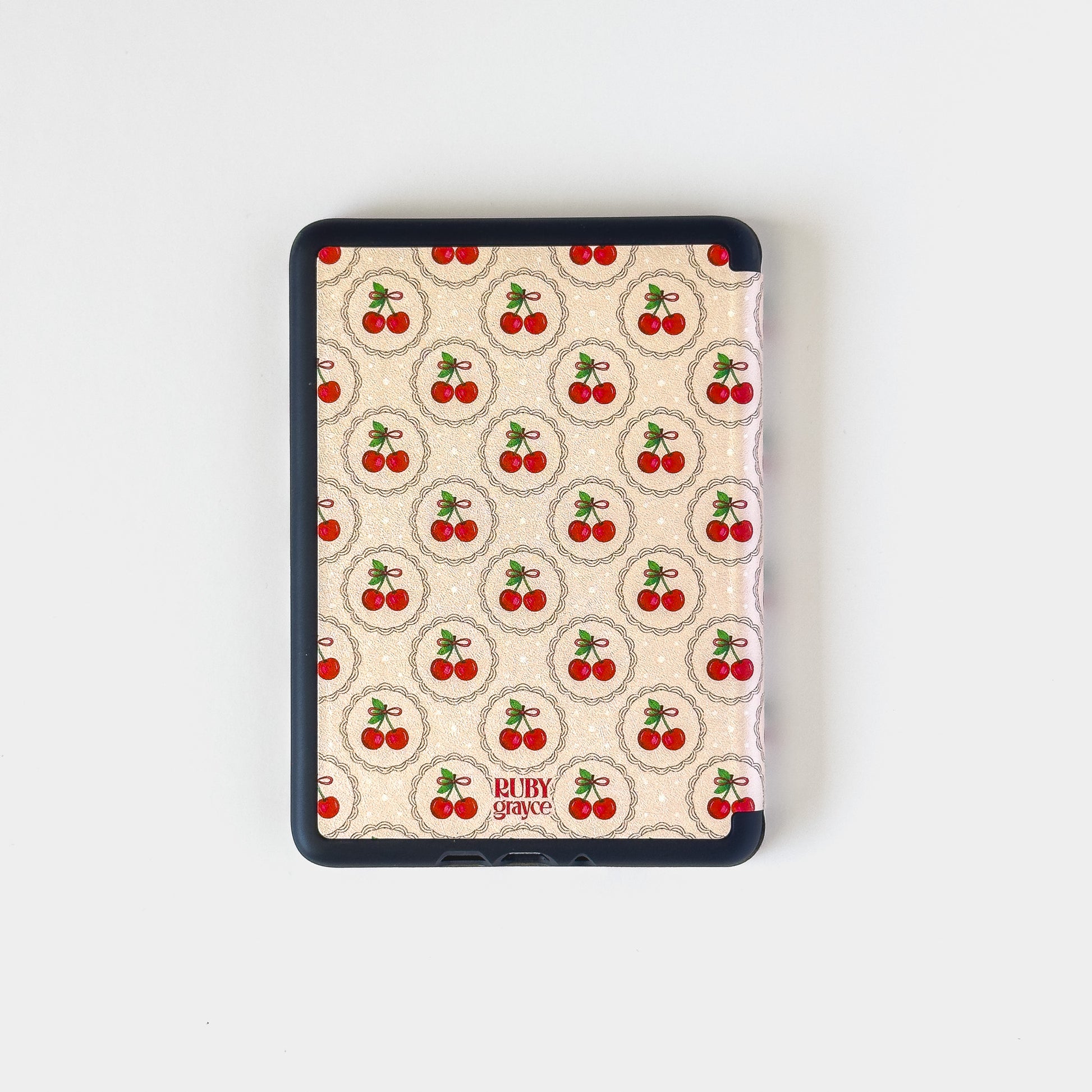 It’s giving grandma’s pie recipe but make it cute. The Cherry Pie Kindle case features bright red cherries in lace-style medallions on a warm cream background with white polka dots. Equal parts retro and fresh, it’s perfect for anyone who loves a little kitsch with their Kindle. Designed to protect and style your device.