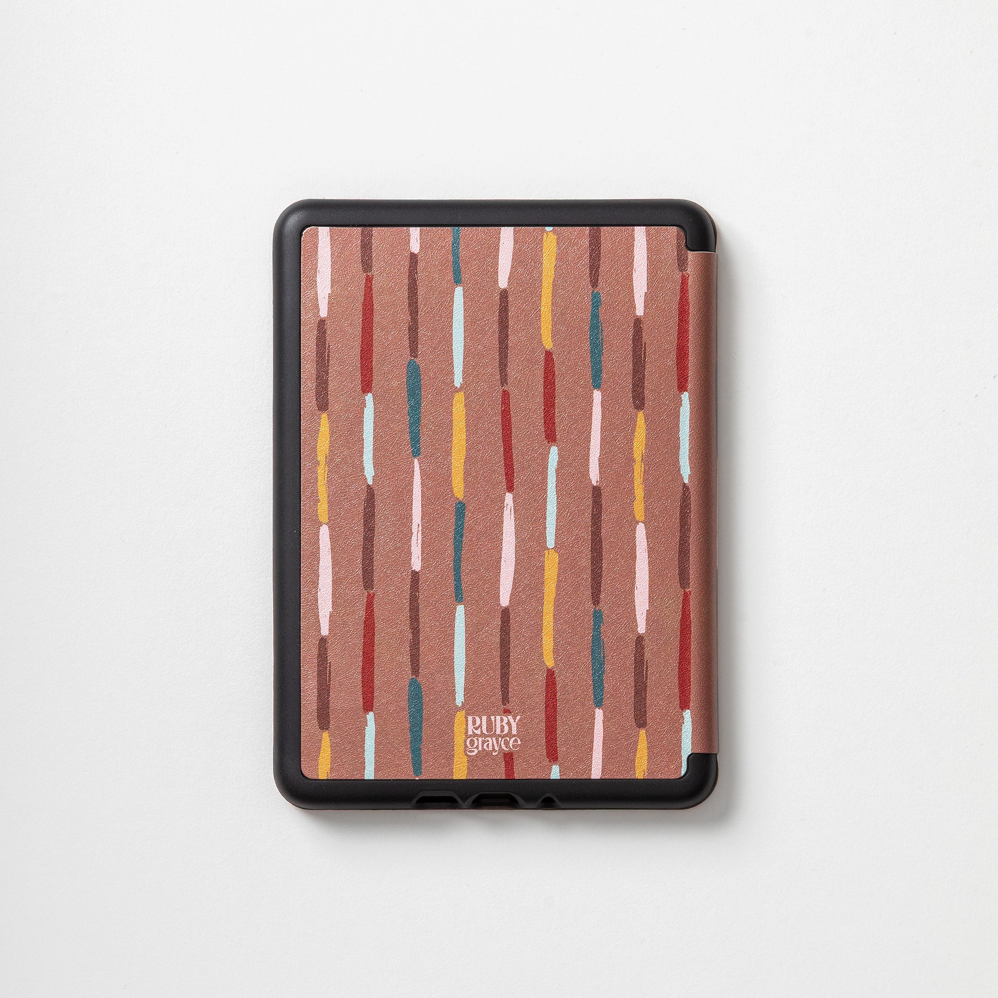 Who doesn’t love a little spice? Stripes & Spice features bold, vertical abstract stripes in brown, mustard, teal, ruby red, light pink, and light blue. It’s a vibrant blend of spicy and sweet with durable protection that keeps your Kindle safe and stylish.